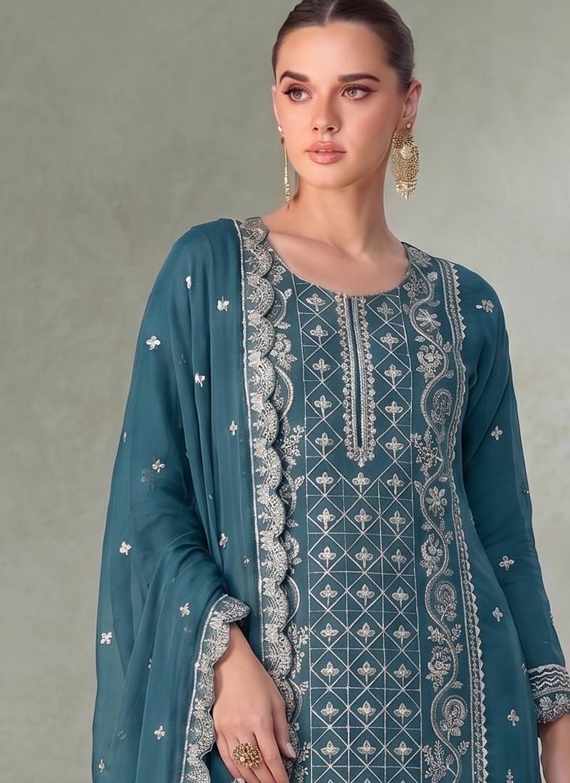 | Product Name | Sky Blue Pakistani Straight Suit For Women Chiffon | |