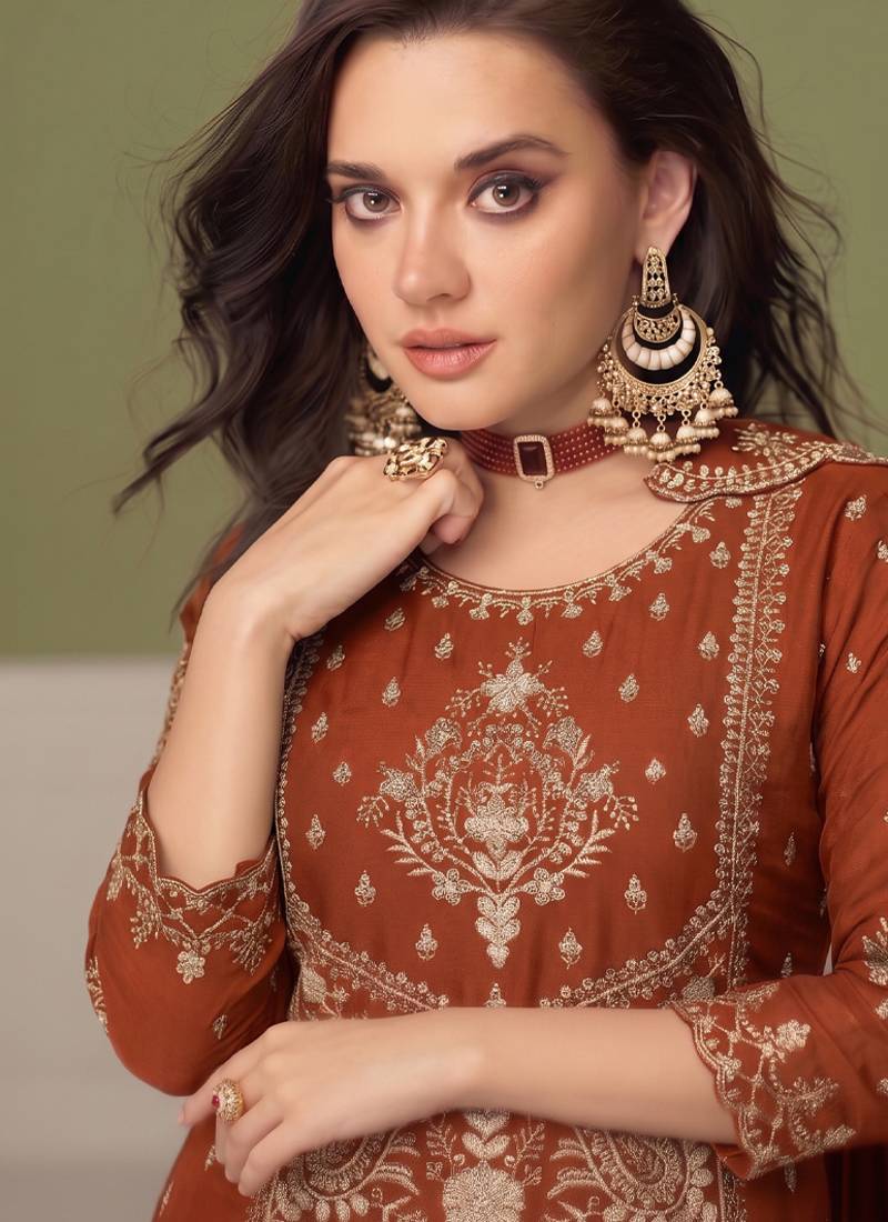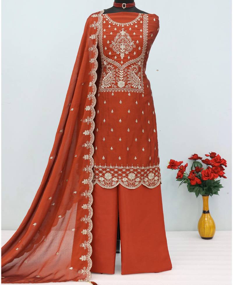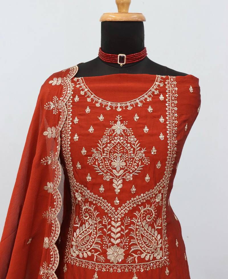 Traditional orange crush silk salwar suit for women wedding wear semi stitched