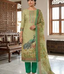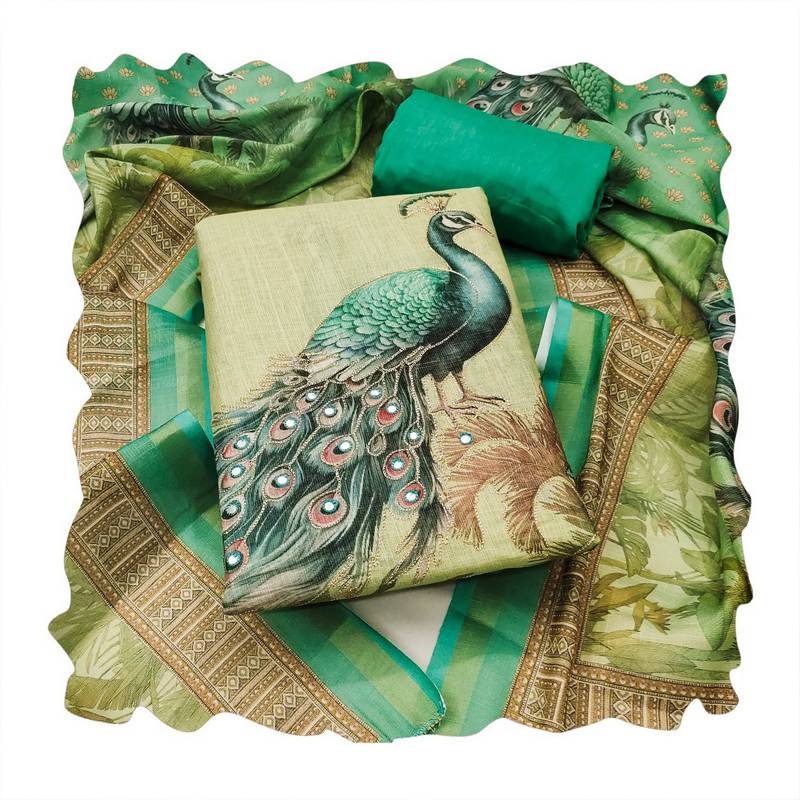 Beautiful green color linen cotton fabric designer salwar kameez for girls unstitched