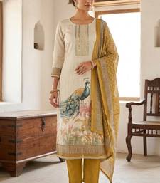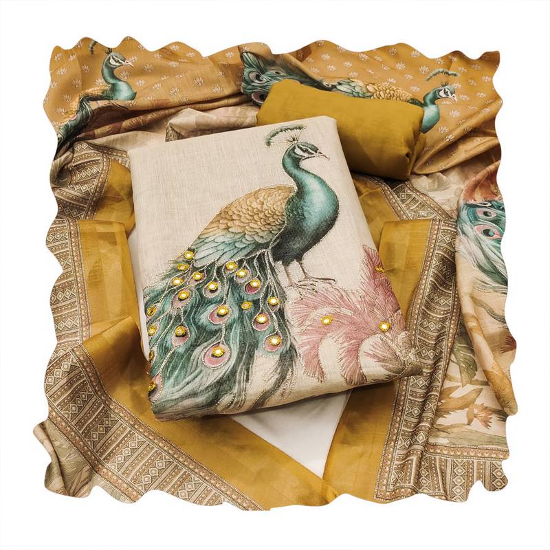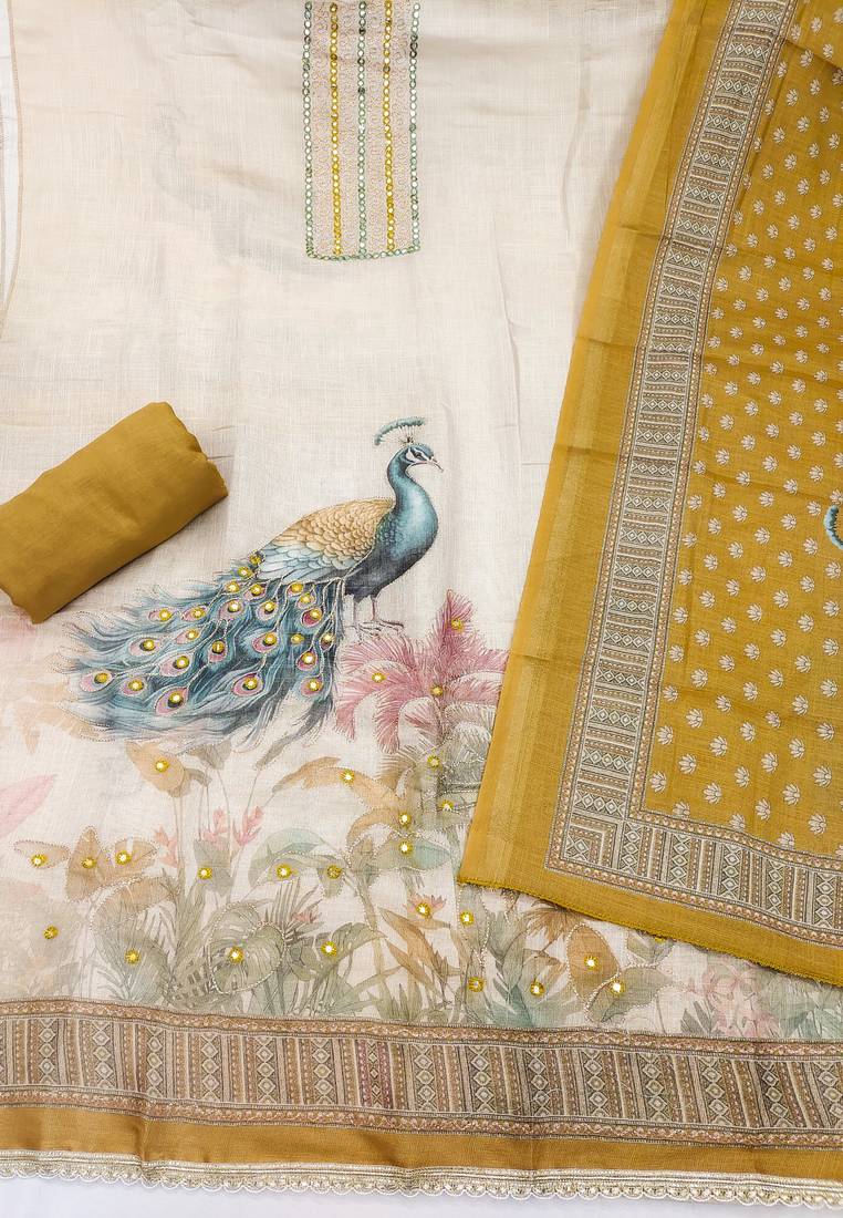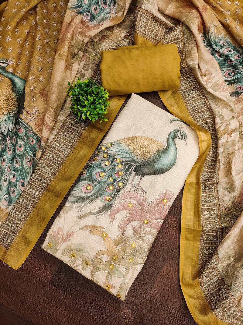 Beautiful mustard color linen cotton fabric designer salwar kameez for girls unstitched