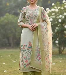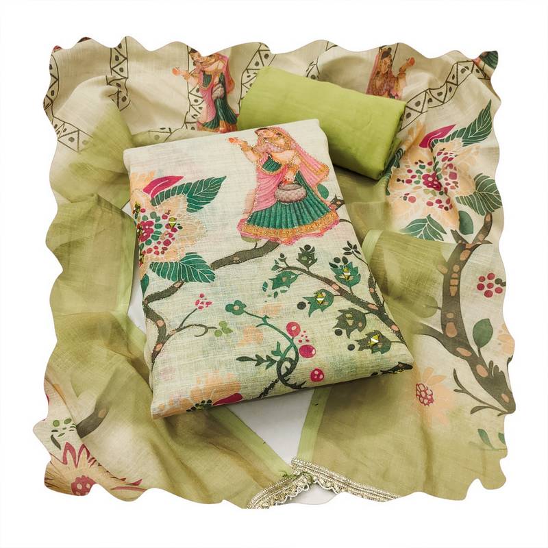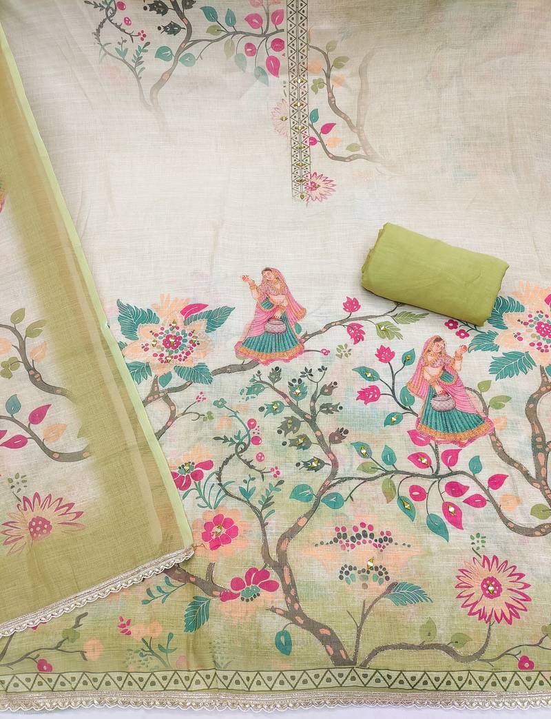 Beautiful pista color linen cotton fabric designer salwar kameez for girls unstitched