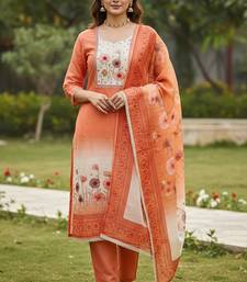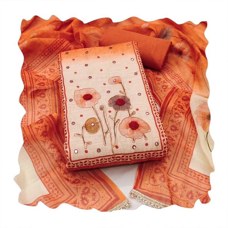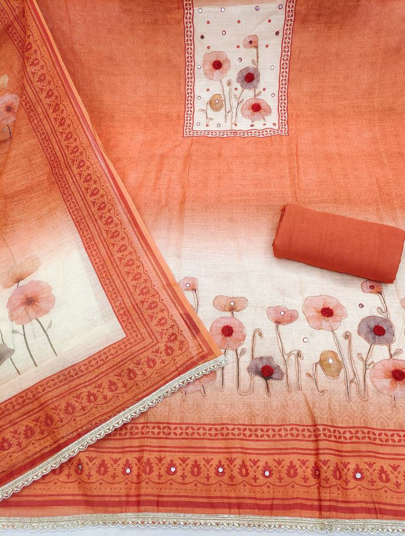 Beautiful rust color linen cotton fabric designer salwar kameez for girls unstitched