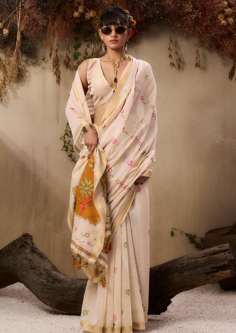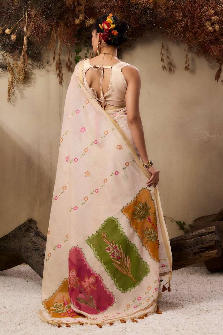 | Product Name | Beige Color Muga Cotton Fabric Resham Woven Designer Ethnic Saree | |