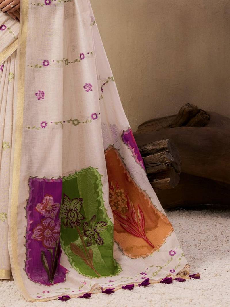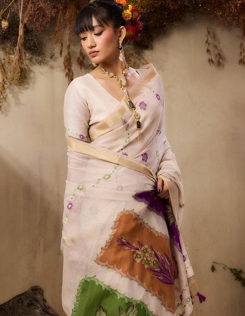 | Product Name | Beige Color Muga Cotton Fabric Resham Woven Designer Ethnic Saree | |