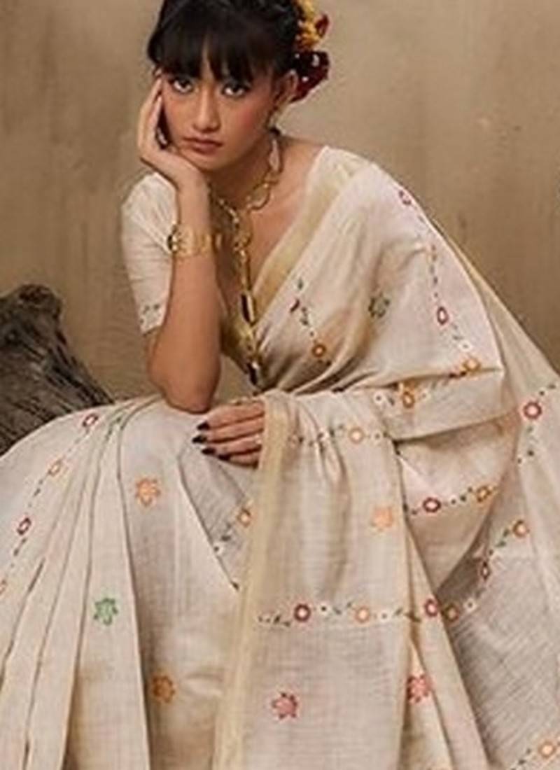 | Product Name | Beige Color Muga Cotton Fabric Resham Woven Designer Ethnic Saree | |