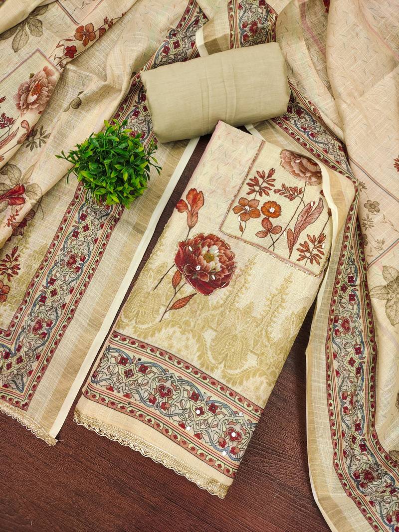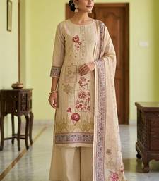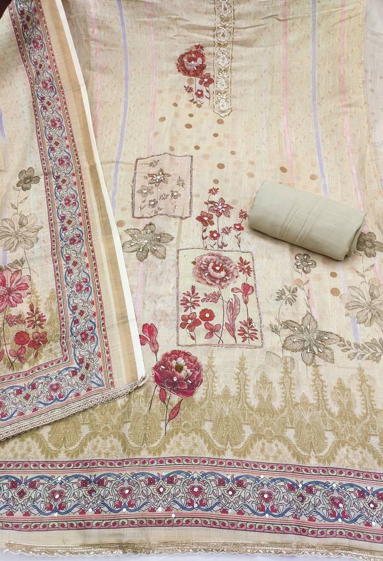 Beige color simmer cotton fabric designer salwar kameez with elegant hand work unstitched