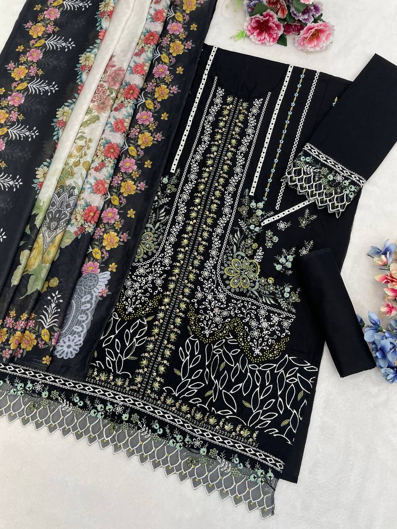 Black color cotton fabric beautiful and stylish ceremonial salwar suit unstitched