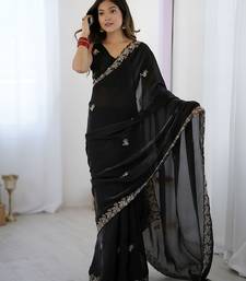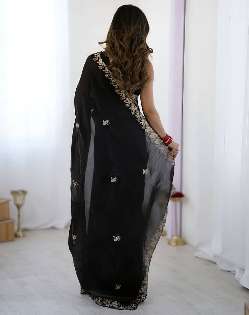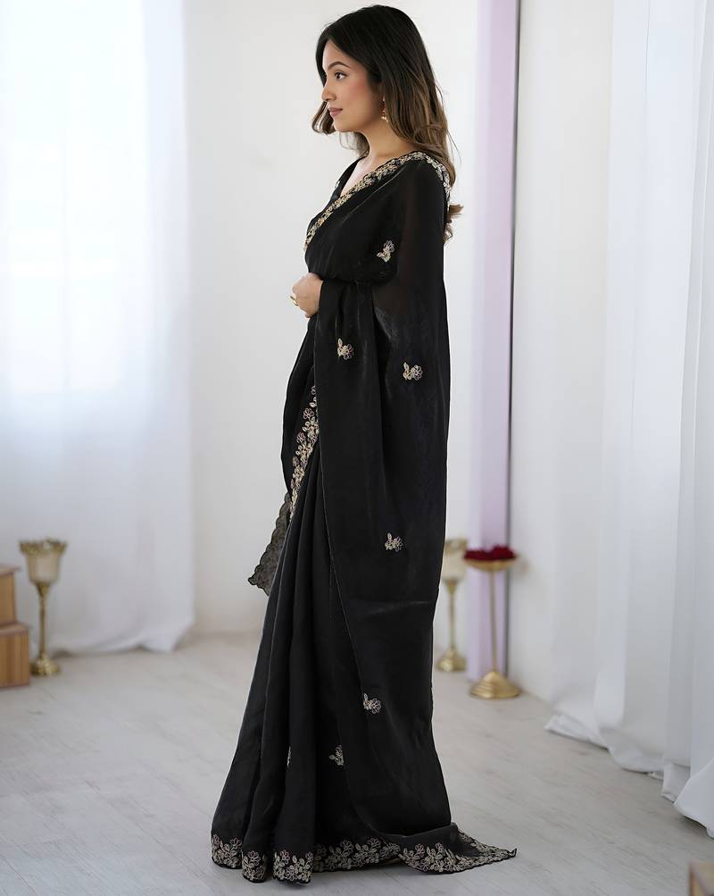 Black color fendy satin silk fabric designer bollywood style girlie saree