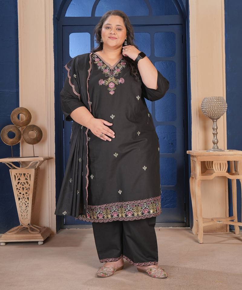 | Product Name | Black Color Smart Embroidered Plus Size Kurta Set For Smart Girlie Looks | |
