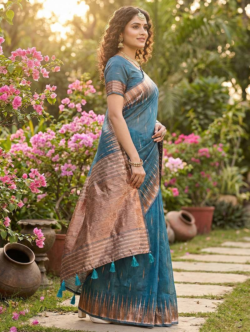 | Product Name | Blue Color Beautiful Linen Cotton Fabric Woven Designer Partywear Saree | |