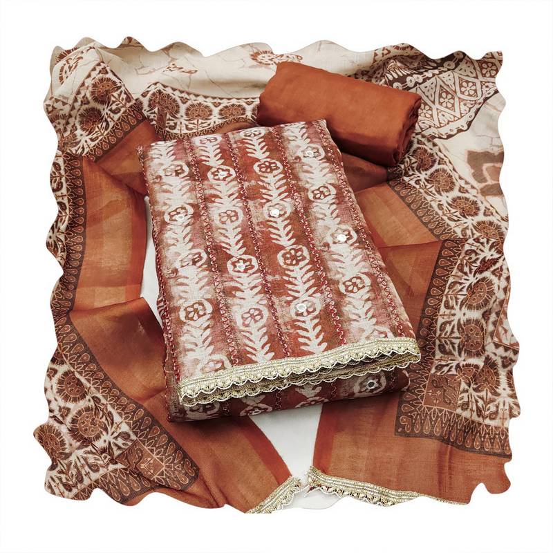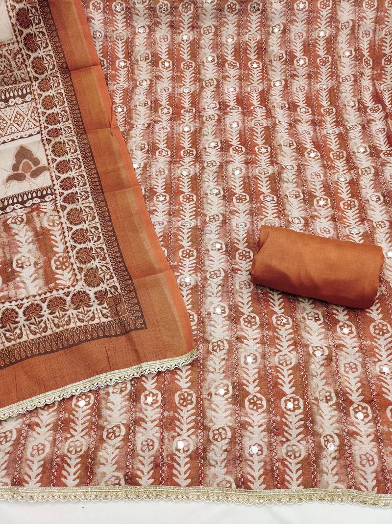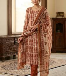 Brown color beautiful lilen cotton smart and ethnic salwar suit for trendy girls unstitched