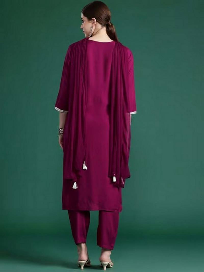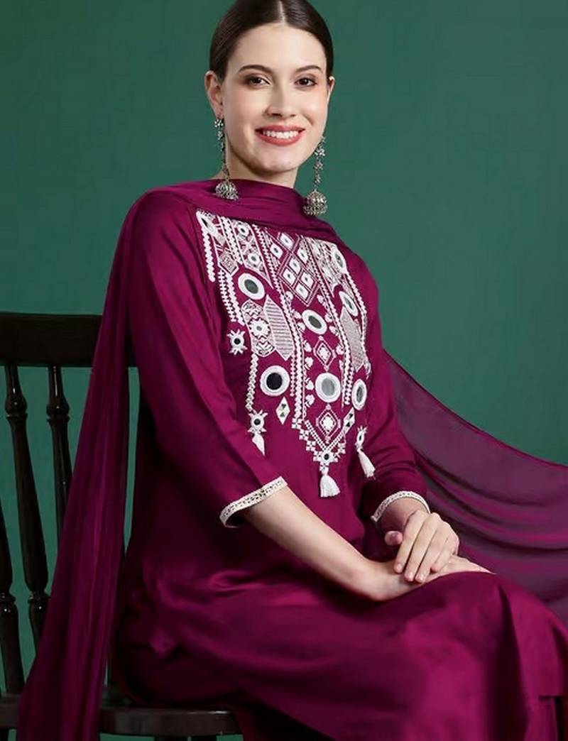 Cherry color smart and trendy viscose chanderi color casual kurta set
