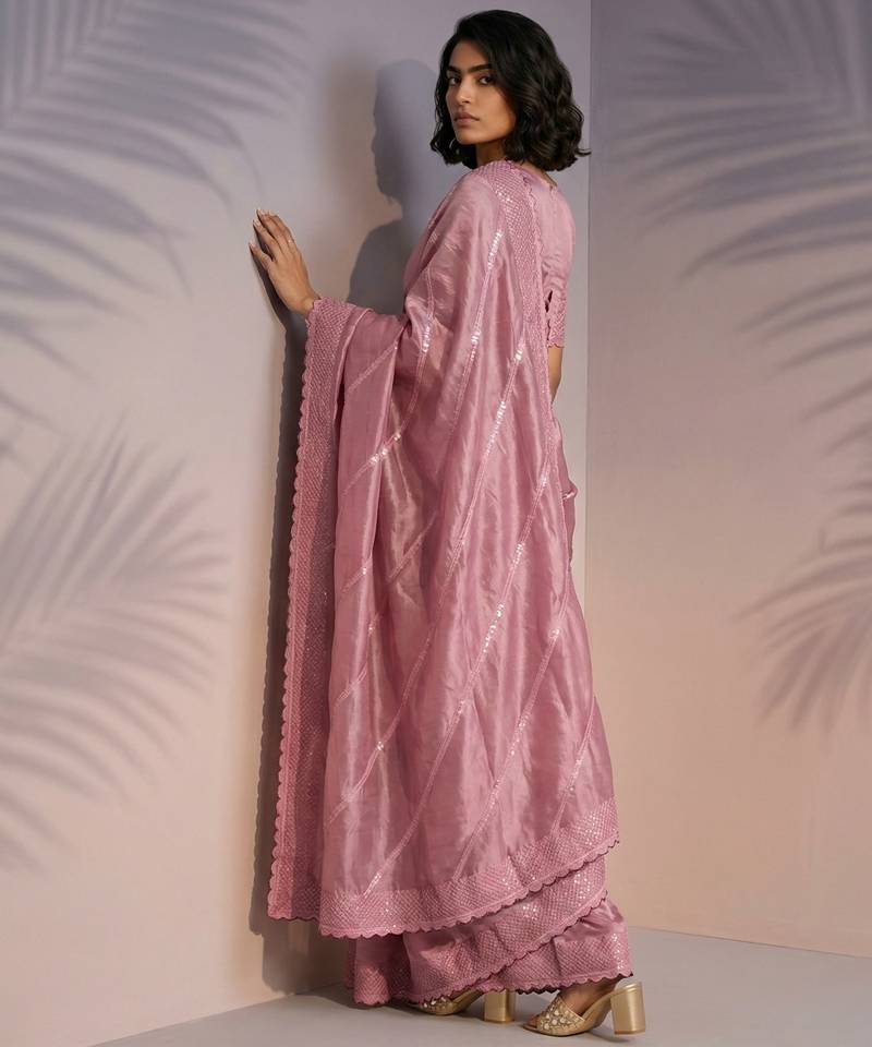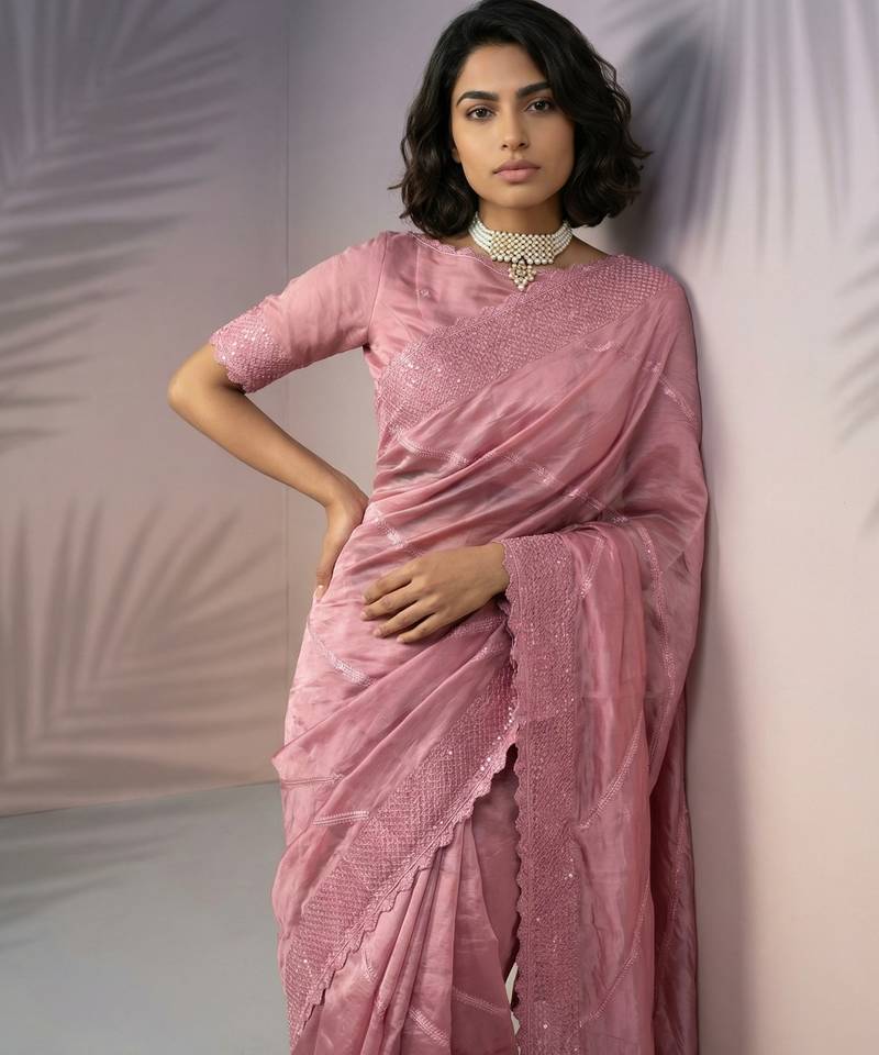 | Product Name | Coral Color Rasberry Silk Fabric Beautiful Embroidered Girlie Saree | |