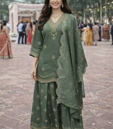 Green color beautiful and ethnic roman silk fabric designer embroidered suit