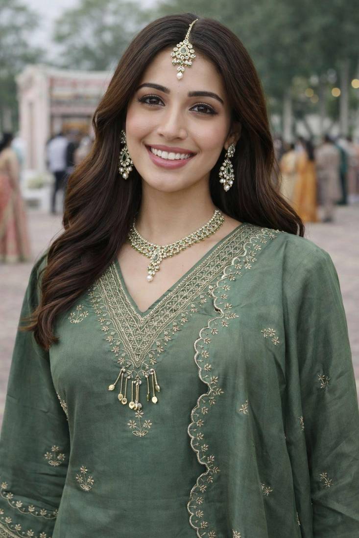 | Product Name | Green Color Beautiful And Ethnic Roman Silk Fabric Designer Embroidered Suit | |