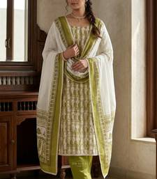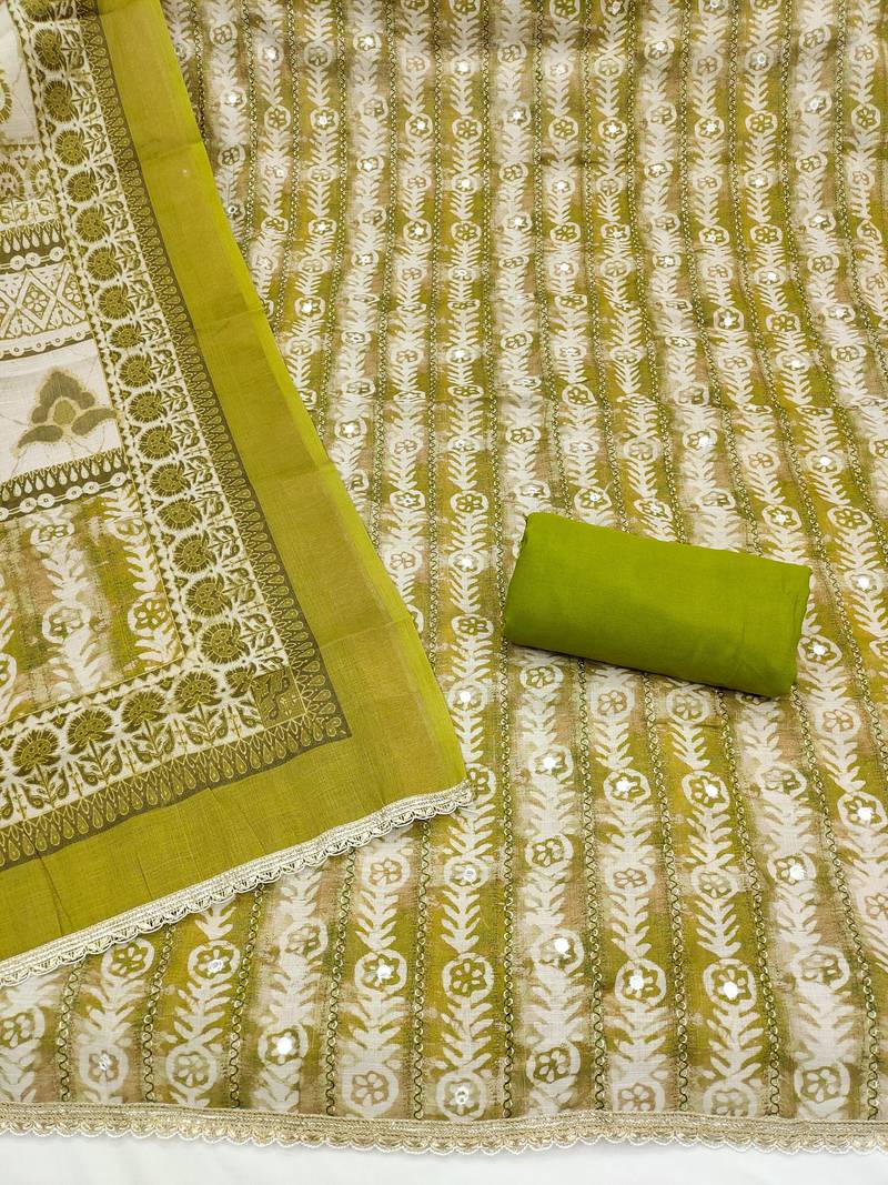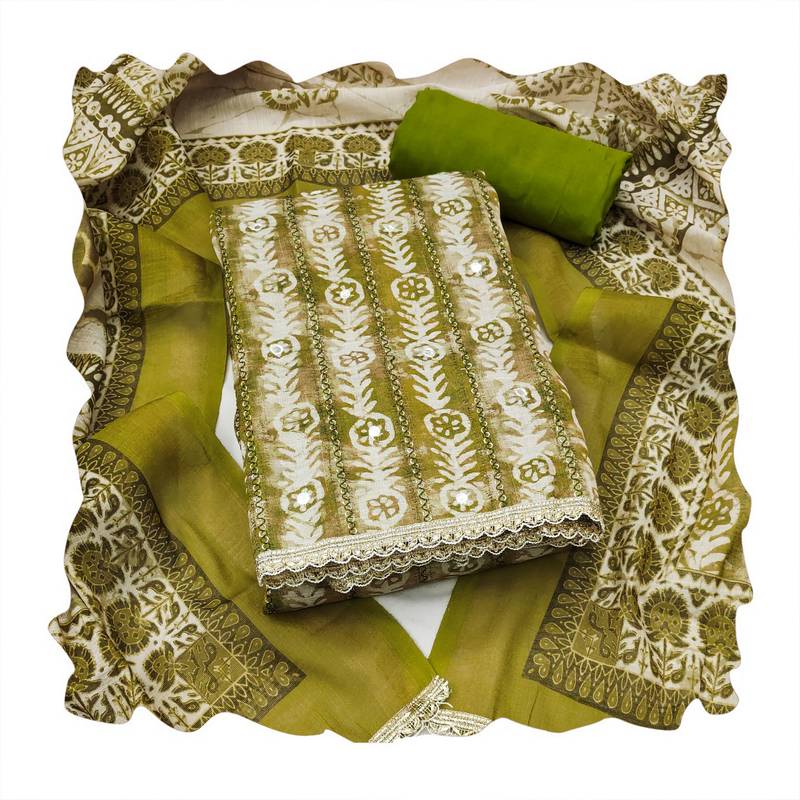 Green color beautiful lilen cotton smart and ethnic salwar suit for trendy girls unstitched