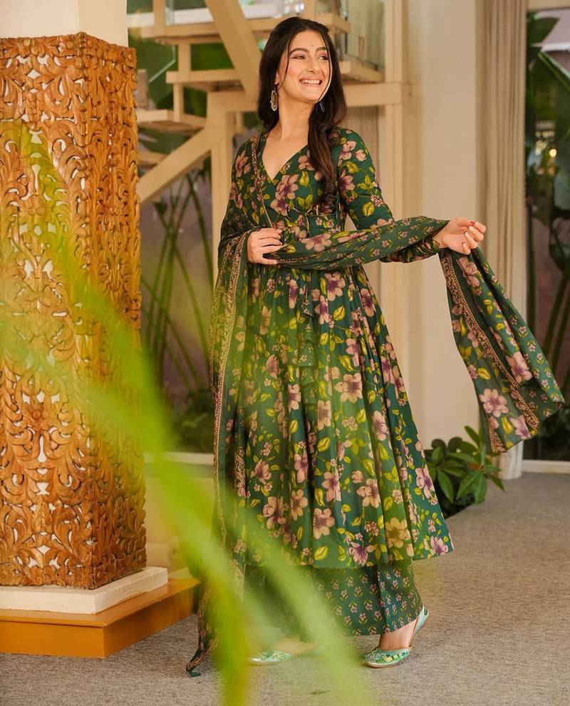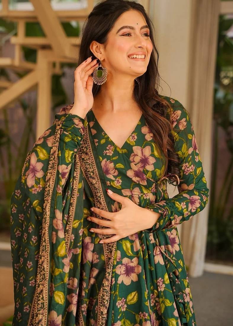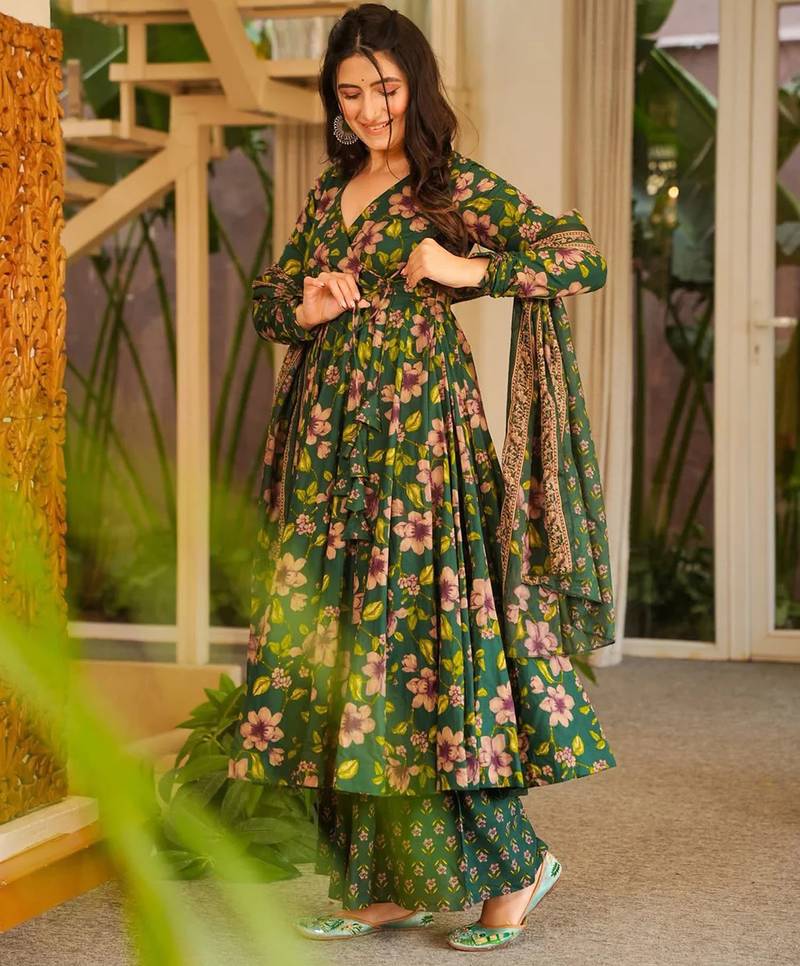 | Product Name | Green Color Cotton Silk Fabric Designer Digital Printed Smart Anarkali Dress | |