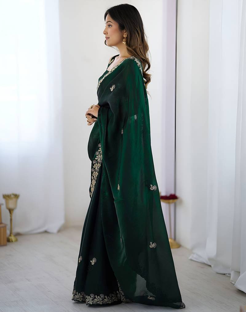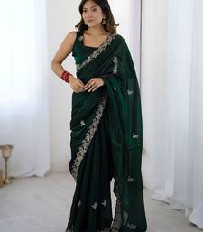 Green color fendy satin silk fabric designer bollywood style girlie saree
