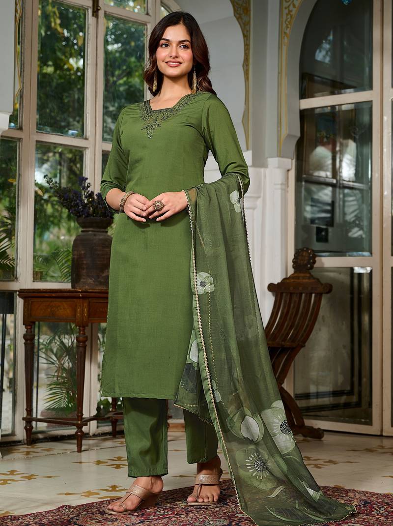 | Product Name | Green Color Smart And Trendy Viscose Chanderi Color Casual Kurta Set | |