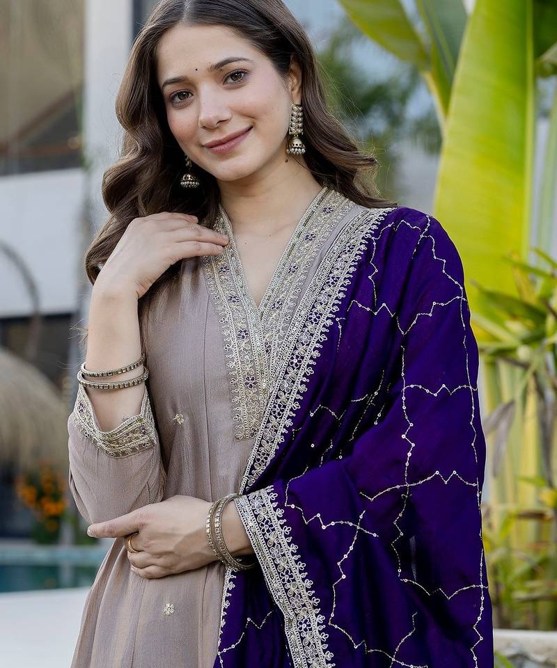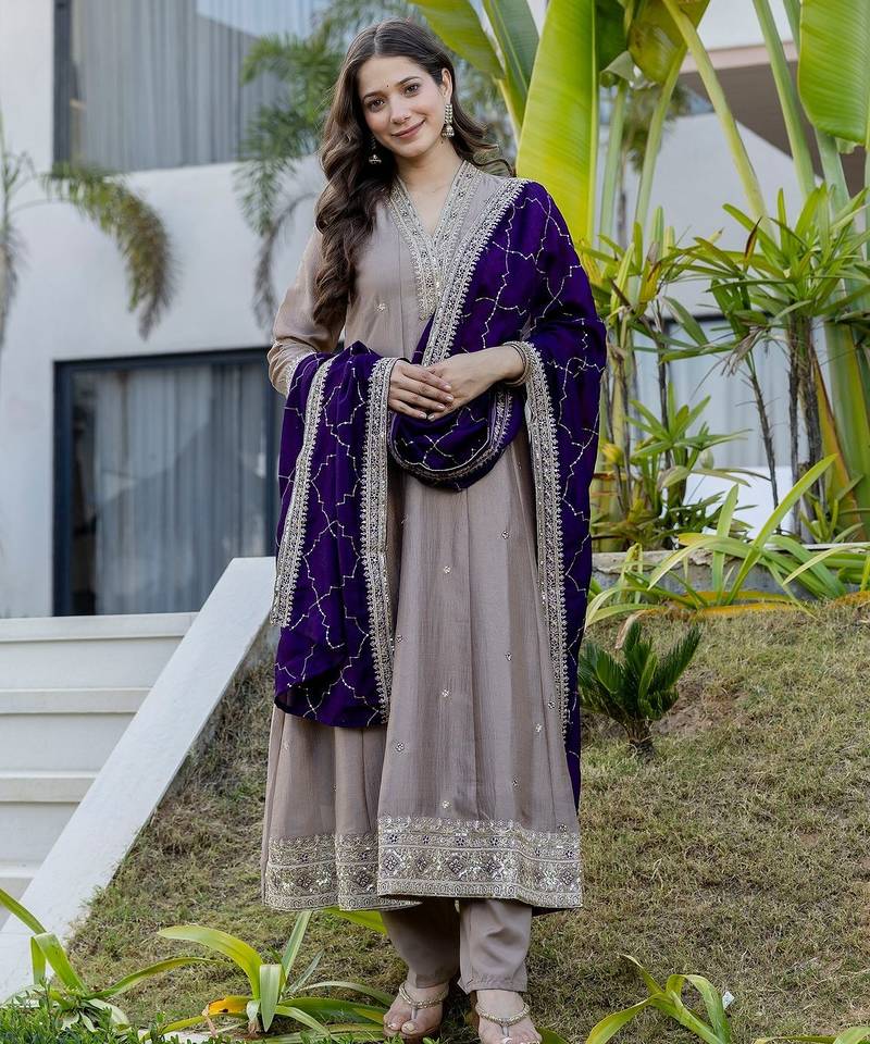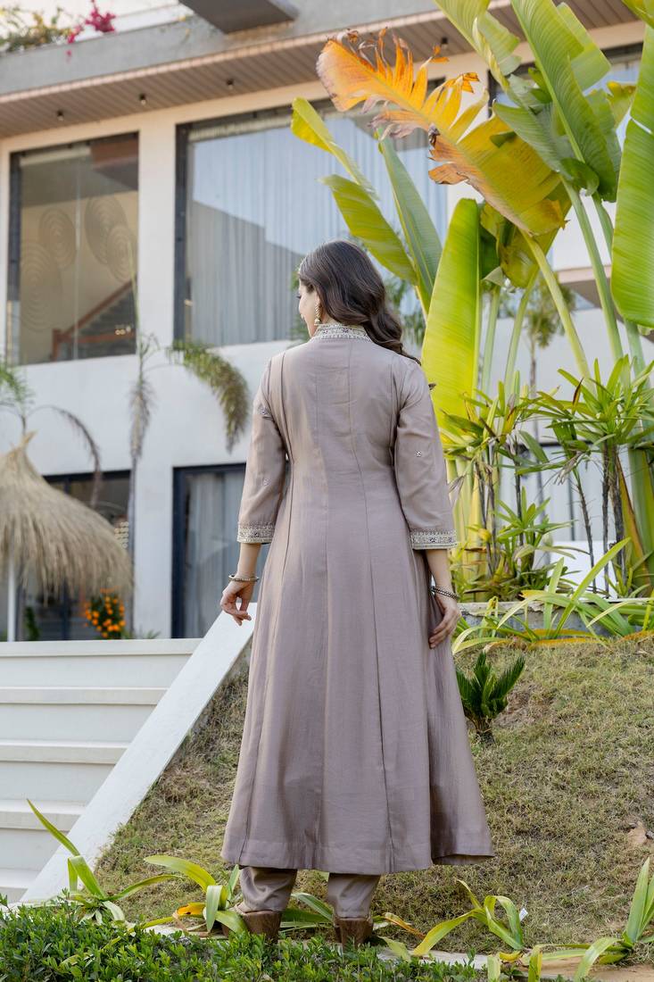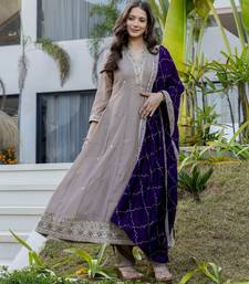 Grey color vichitra silk fabric designer embroidery work ethnic ceremonial suit