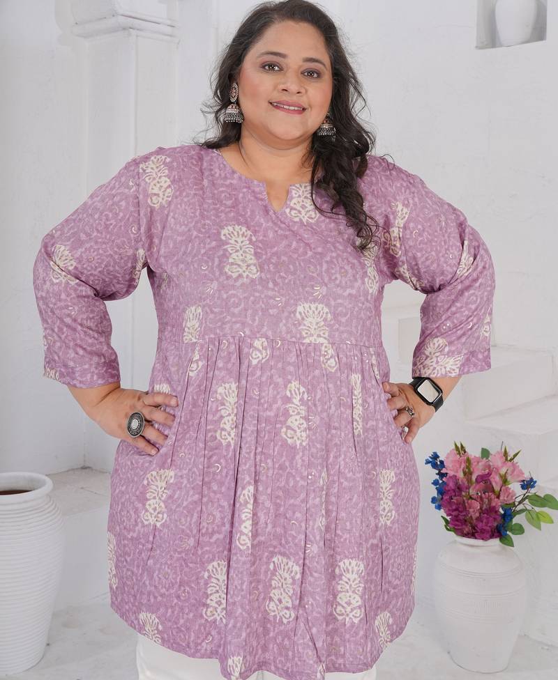 Lavender color beautiful plus size kurta for casual looks