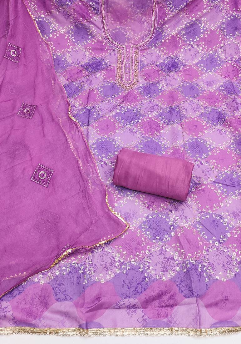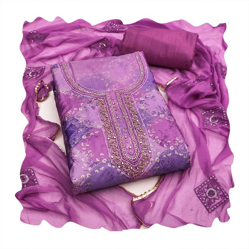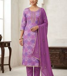 Lavender color maslin fabric stylish partywear salwar kameez unstitched