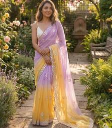 Lavender-yellow twin padding color pixel crush fabric smart and sophisticated girlie saree