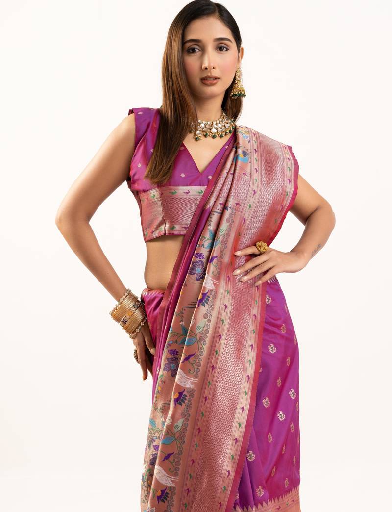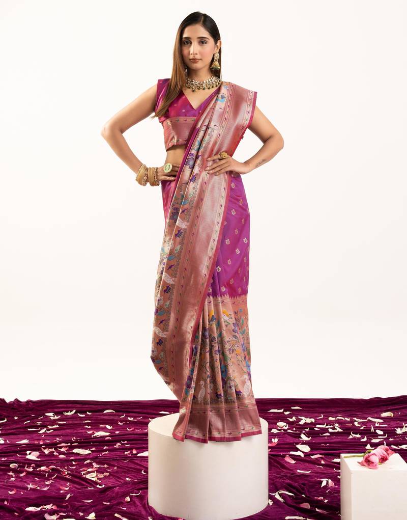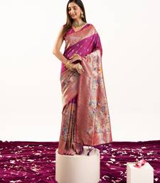 Magenta color banarasi silk fabric heavy partywear ceremonial saree