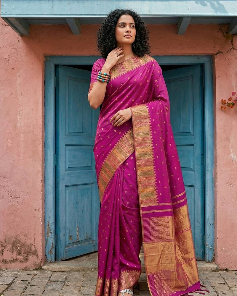 | Product Name | Magenta Color Silk Blend Woven Designer Fabric Ceremonial Saree | |