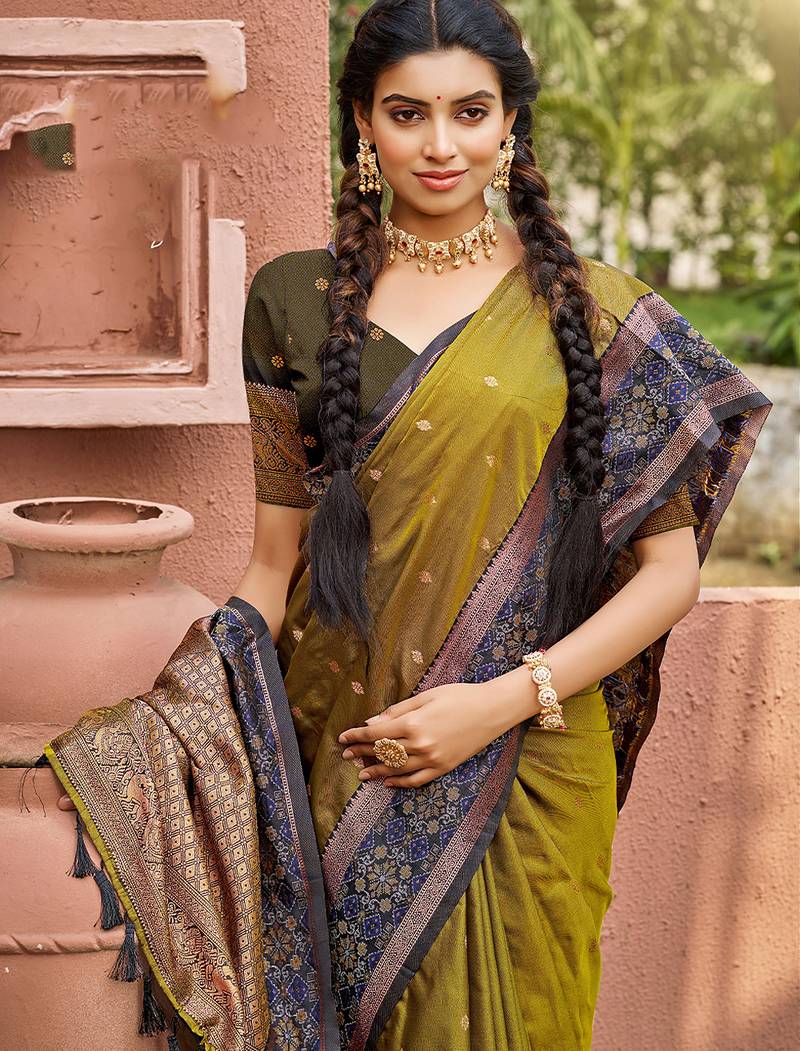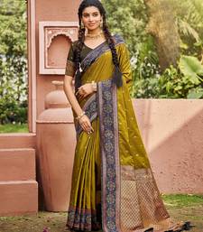Mahendi color smart and ethnic woven designer soft silk saree