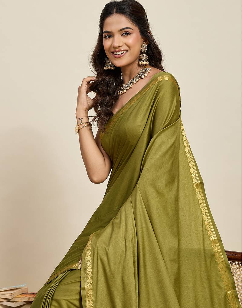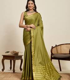 Mahendi color soft silk woven jari designer ethnic partywear saree