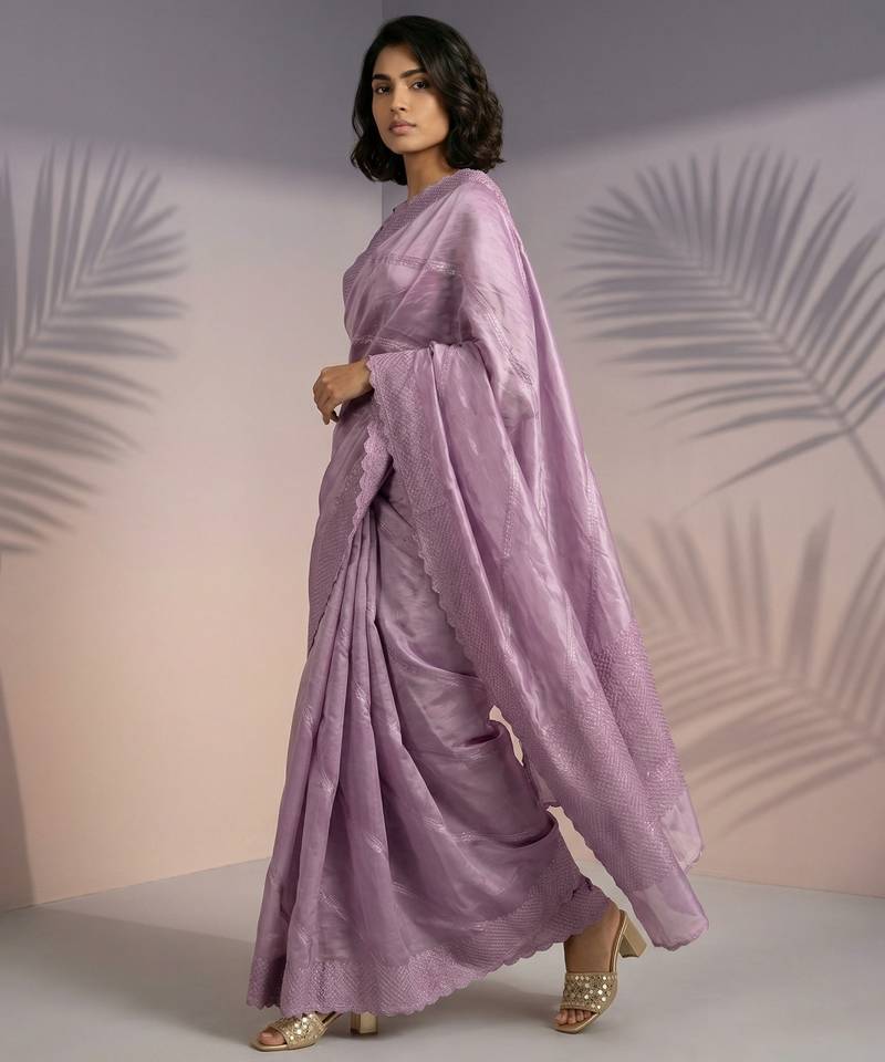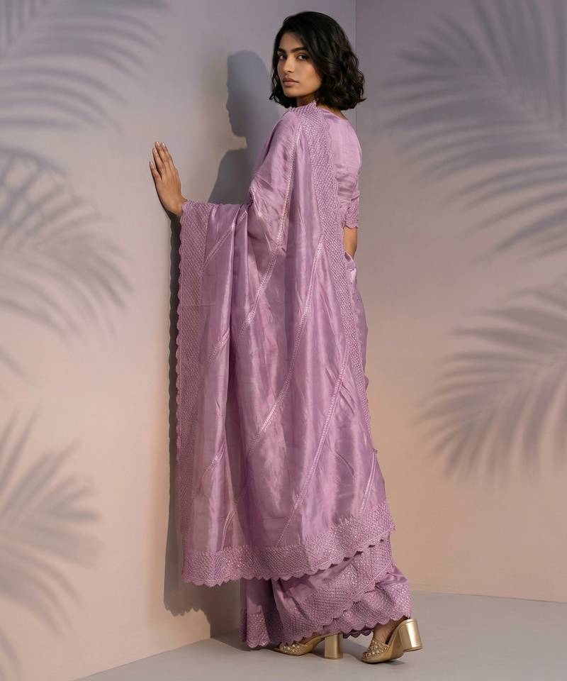 Mauve color rasberry silk fabric beautiful embroidered girlie saree