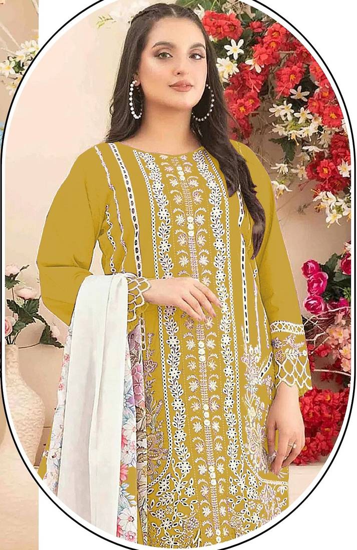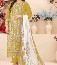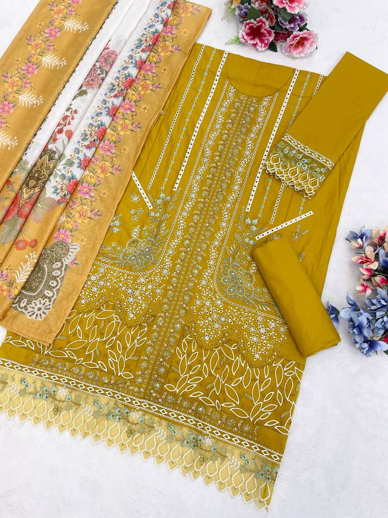 Mustard color cotton fabric beautiful and stylish ceremonial salwar suit unstitched