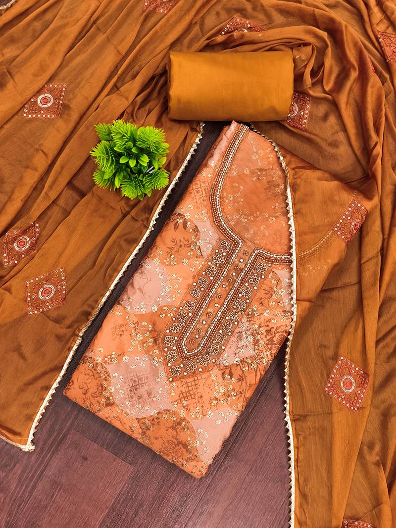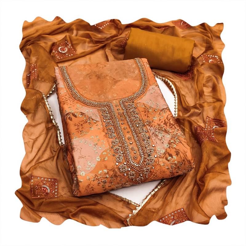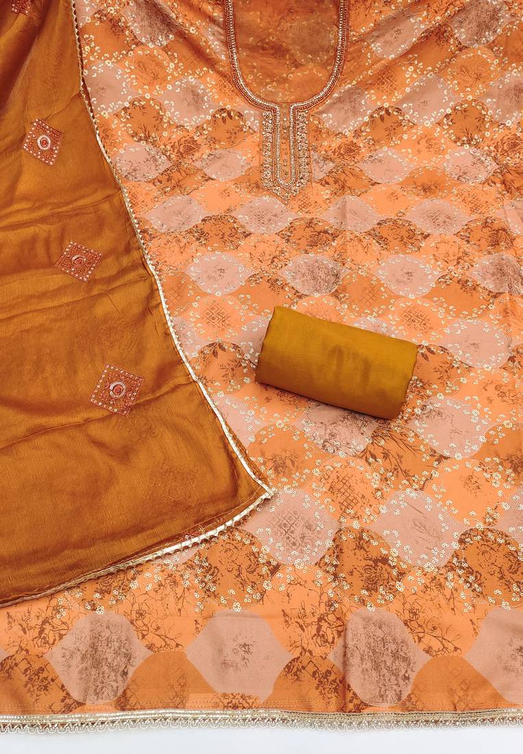 Mustard color maslin fabric stylish partywear salwar kameez unstitched