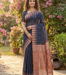 Navy blue color beautiful linen cotton fabric woven designer partywear saree