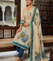 Off white color simmer cotton fabric designer salwar kameez with elegant hand work unstitched