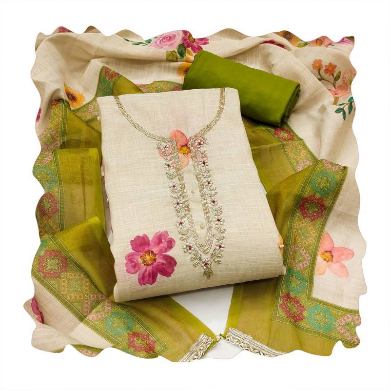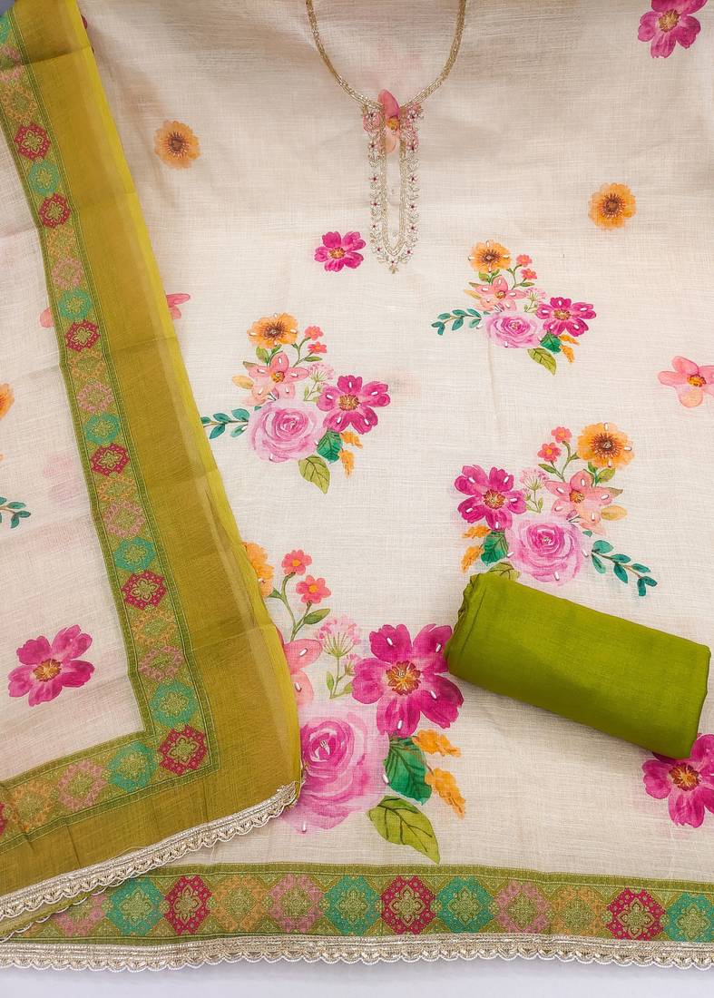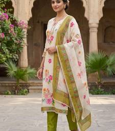 Off white color smart and elegant lilen cotton salwar kameez unstitched