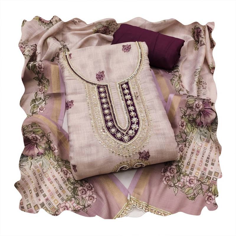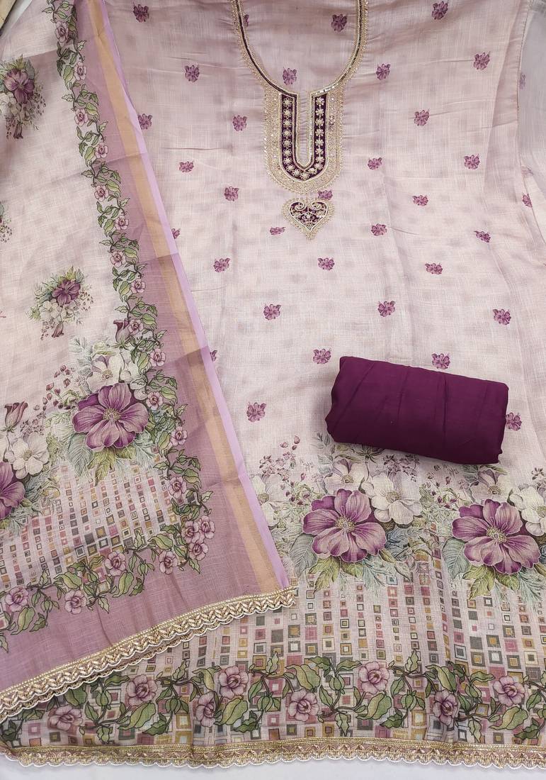Off white color smart and elegant lilen cotton salwar kameez unstitched