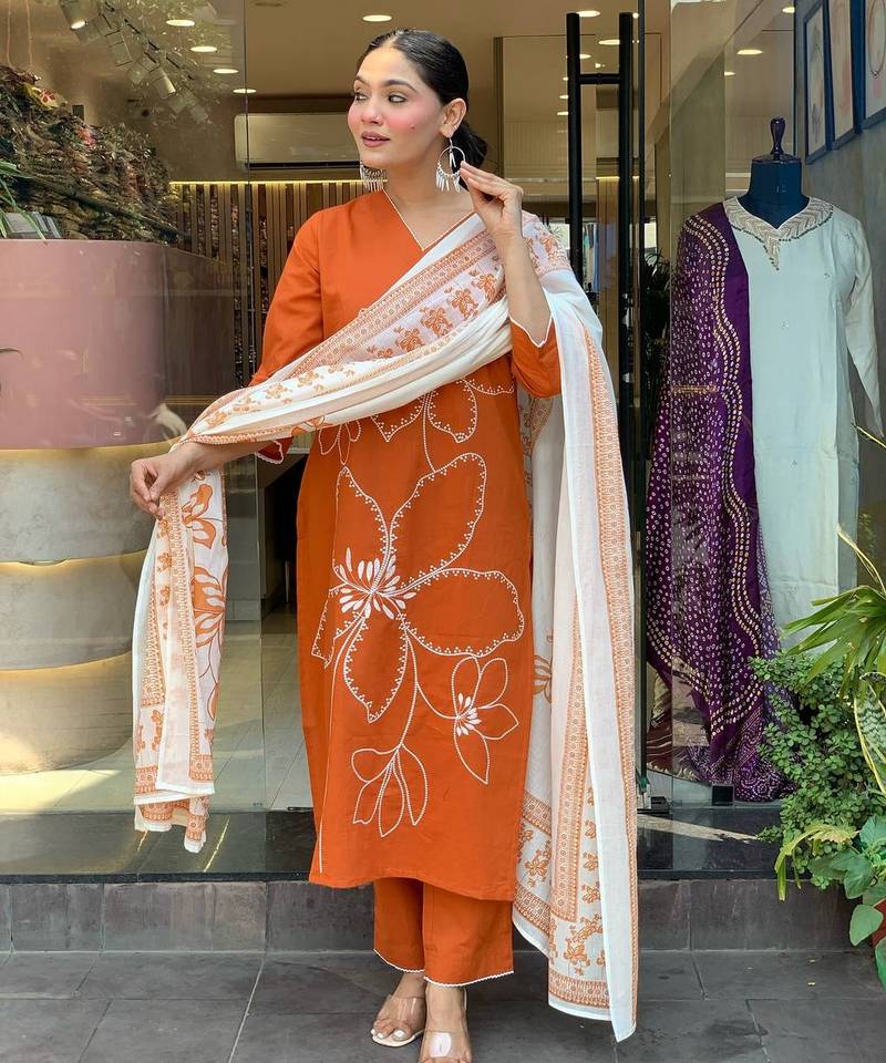 | Product Name | Orange Color Smart And Trendy Viscose Chanderi Color Casual Kurta Set | |