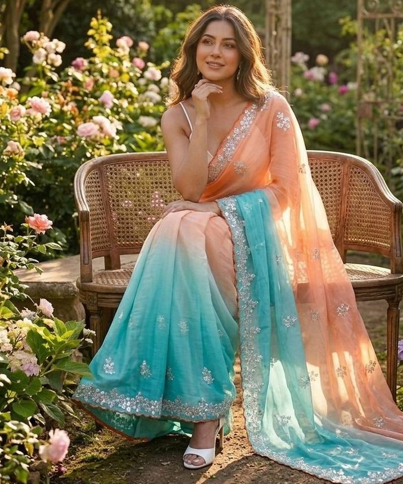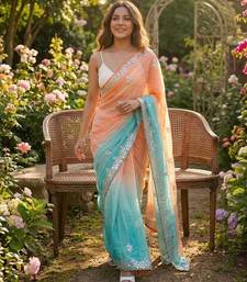 | Product Name | Orange Sky Blue Twin Padding Color Pixel Crush Fabric Smart And Sophisticated Girlie Saree | |