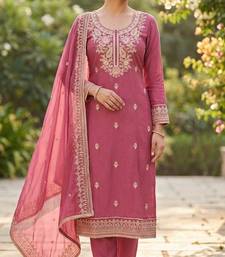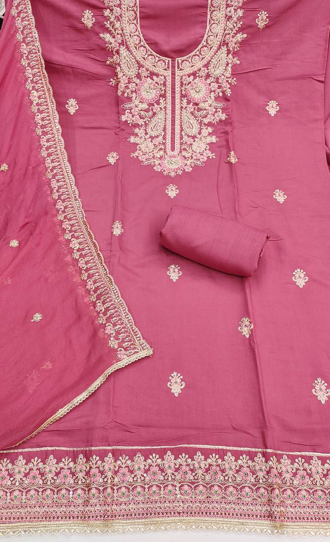 Pink color cotton fabric designer ceremonial suit unstitched