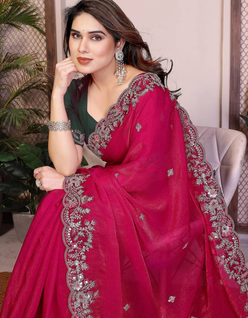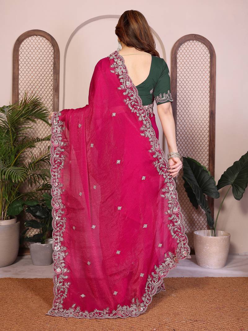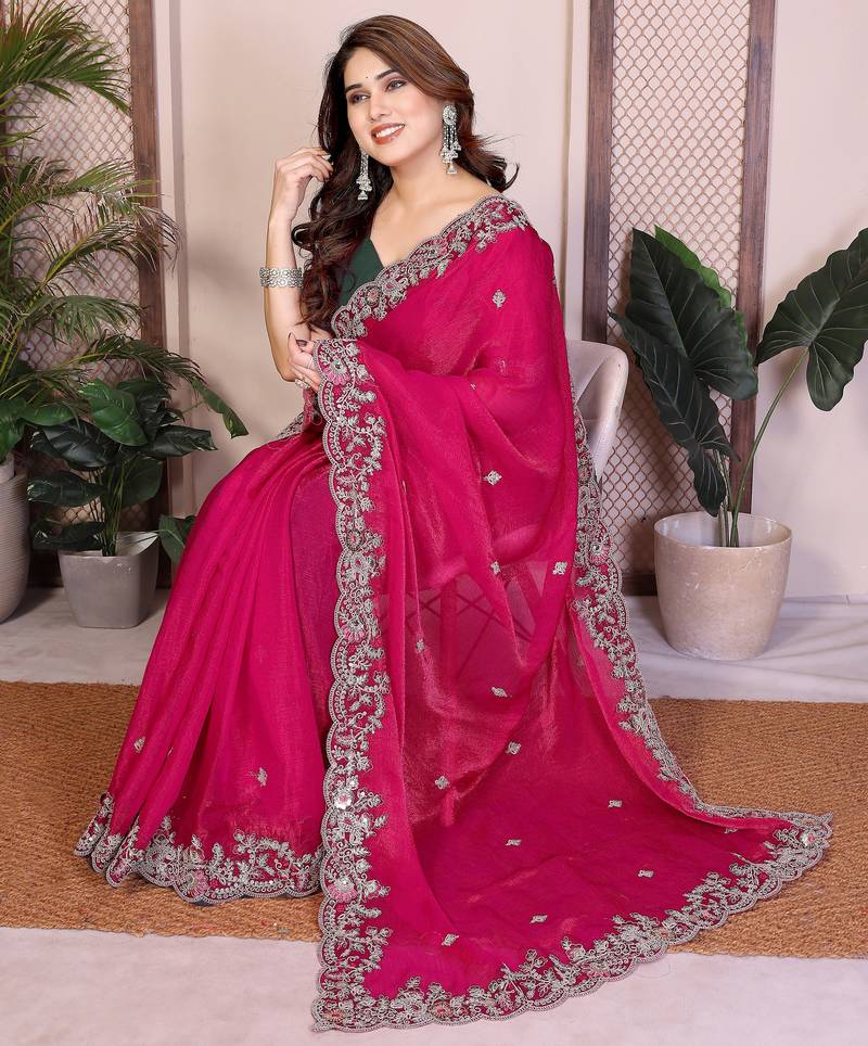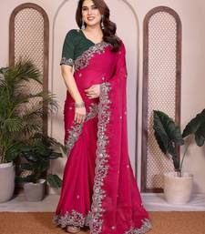 Pink color fendy chiffon fabric stylish bollywood style saree