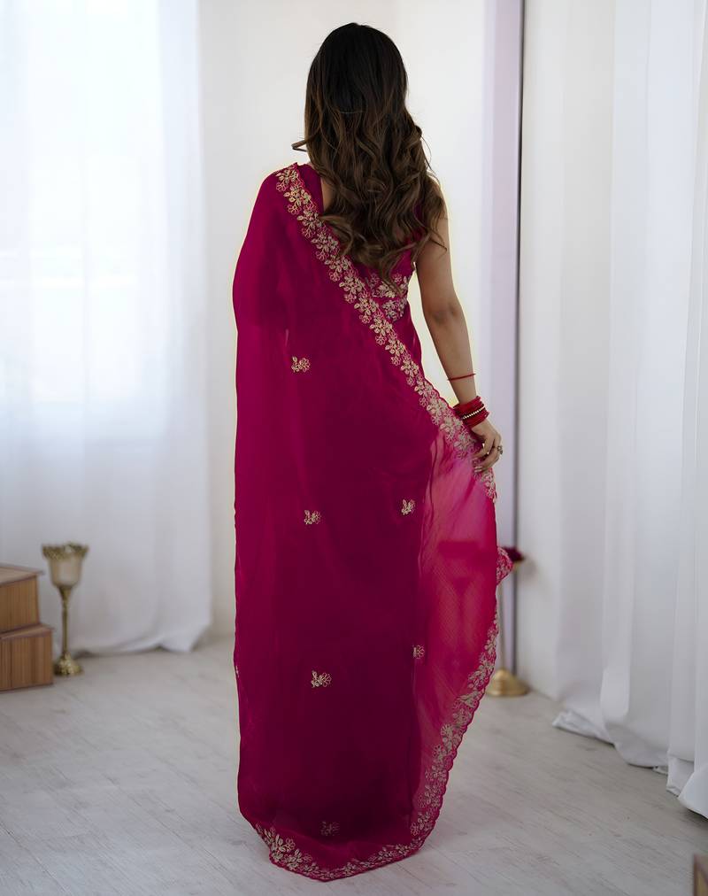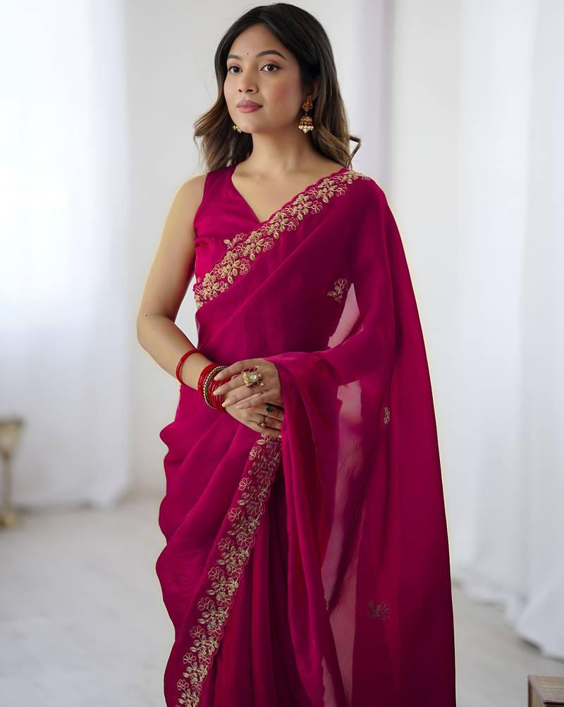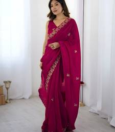 Pink color fendy satin silk fabric designer bollywood style girlie saree