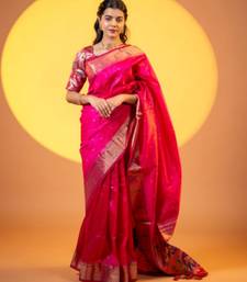 Pink color khadi raw silk fabric designer ceremonial traditional saree