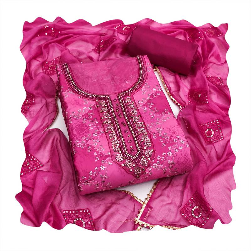 Pink color maslin fabric stylish partywear salwar kameez unstitched