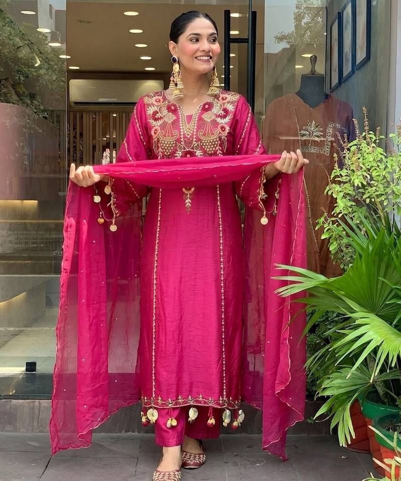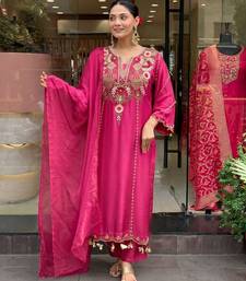 | Product Name | Pink Color P V Chanderi Fabric Beautiful Embroidered Ceremonial Readymade Kurta Set | |