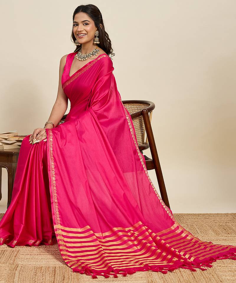 | • | Saree | : | Color- Pink / Fabric- Silk Blend |