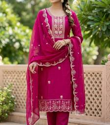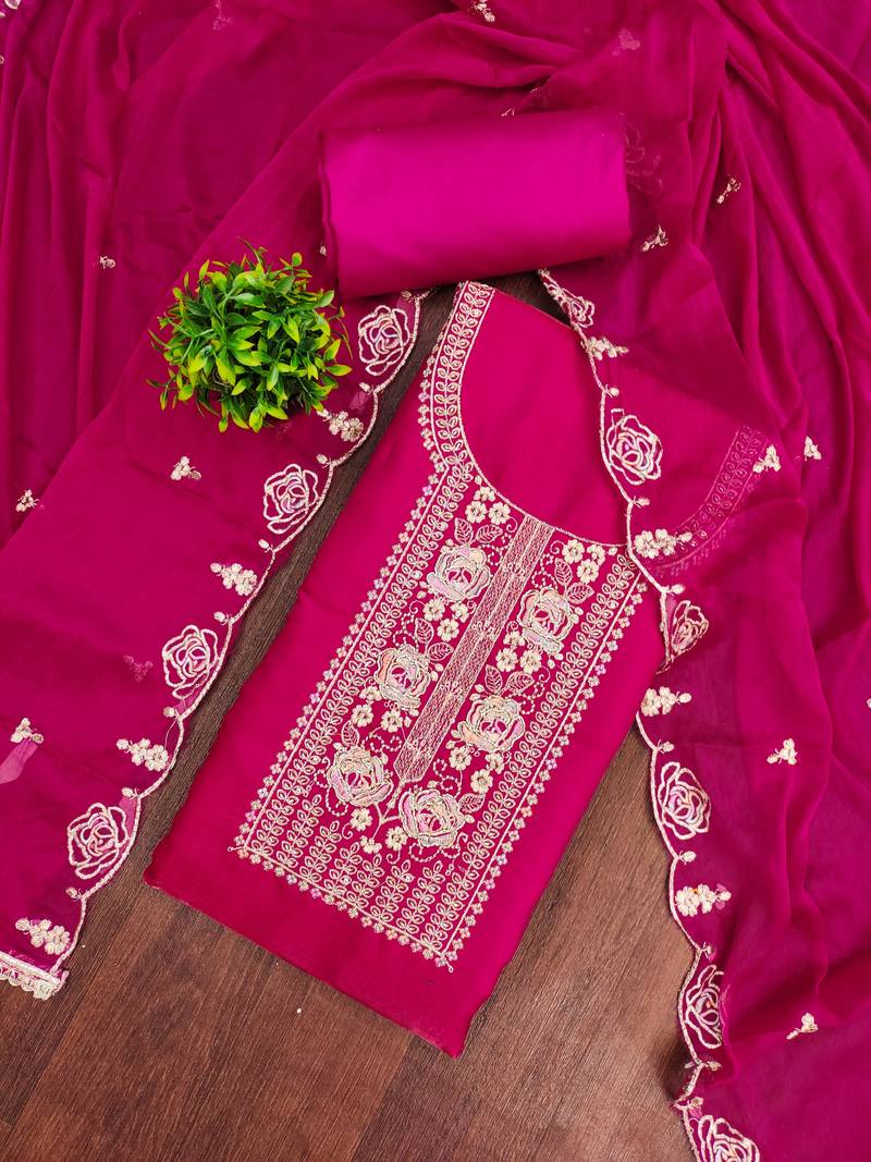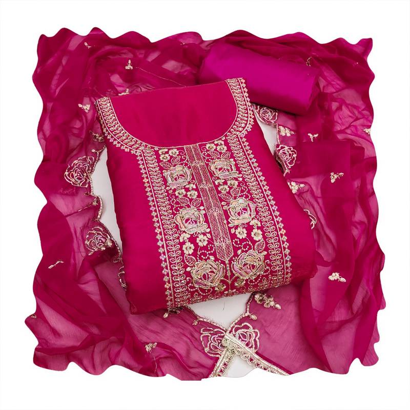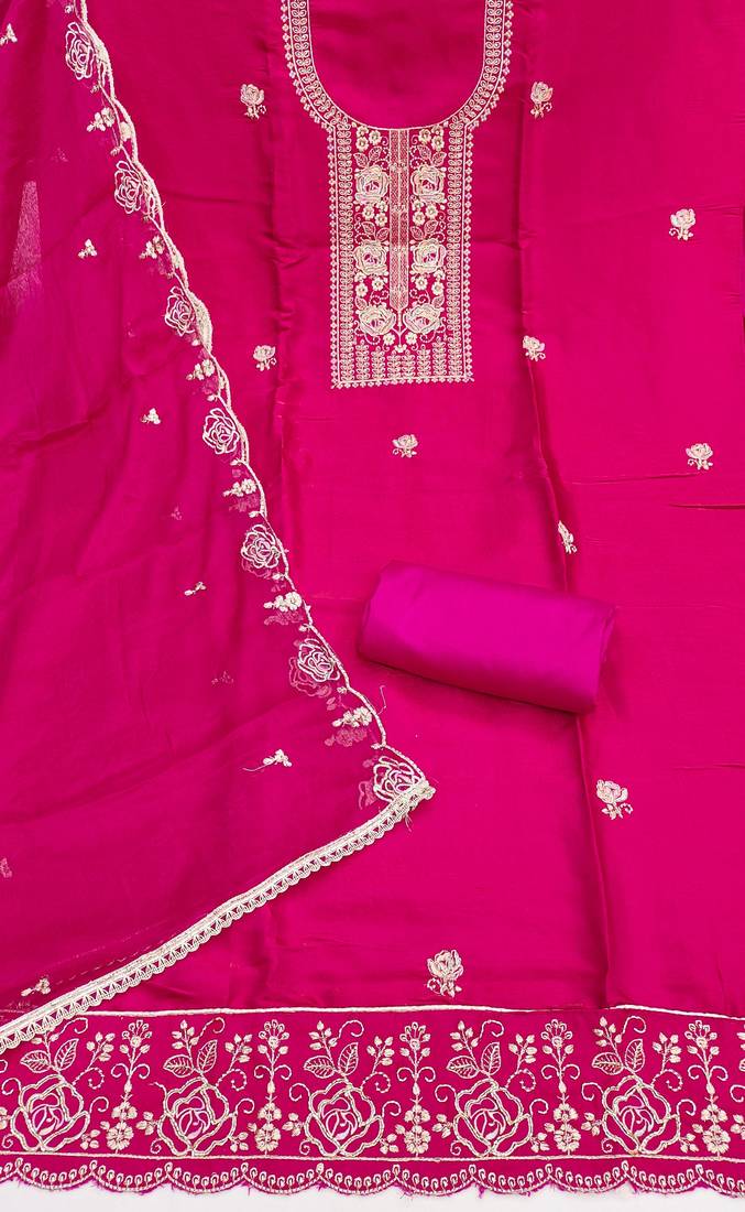 Pink color viscose satin fabric designer ceremonial suit unstitched