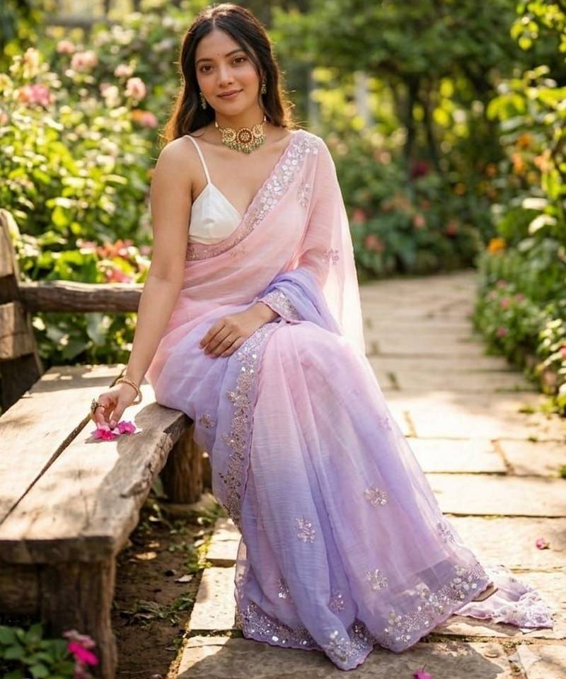 Pink-lavender twin padding color pixel crush fabric smart and sophisticated girlie saree