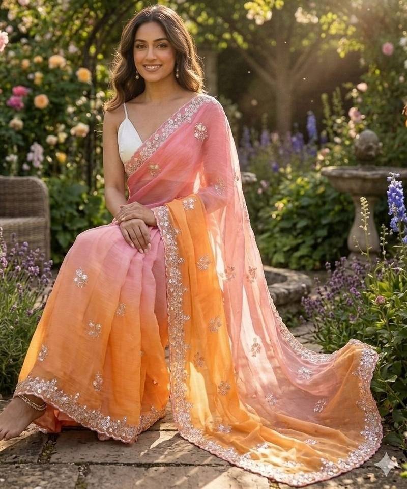 | Product Name | Pink Orange Twin Padding Color Pixel Crush Fabric Smart And Sophisticated Girlie Saree | |